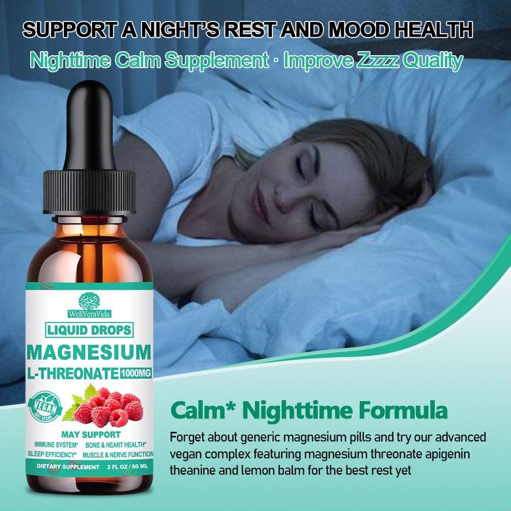 Magnesium L-Threonate Liquid, Triple Sleep Magnesium Threonate w. Apigenin, Theanine, Lemon Balm High Absorption Liquid Magnesium Threonate Supplement for Sleep Memory Calm Brain Nerve Muscle